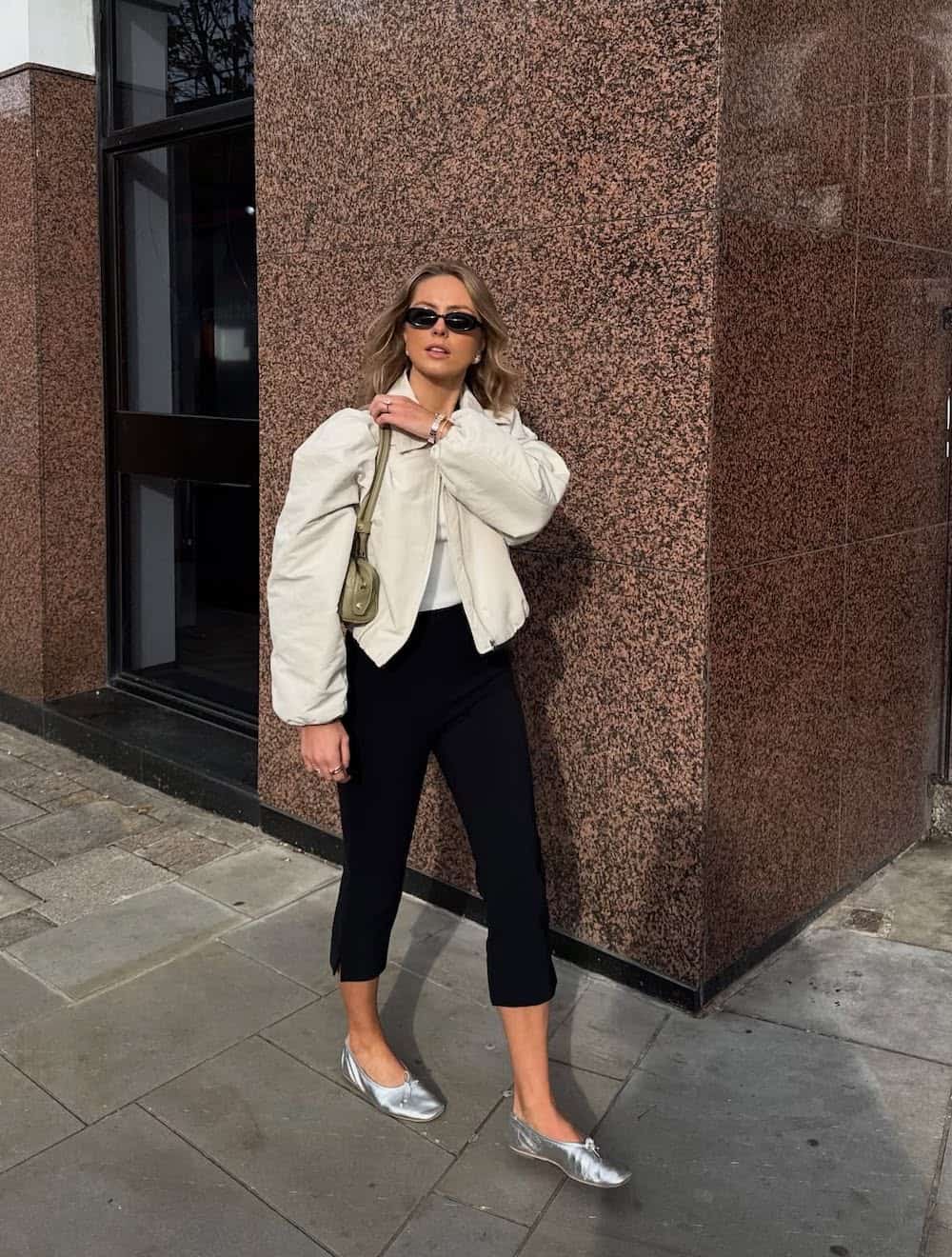 As the weather warms, many are eager to embrace shorter hemlines. Capri pants offer a stylish compromise, providing warmth when needed while allowing you to enjoy the early spring sunshine. Combined with crisp white layers and silver flats for a touch of glamour, this outfit is perfectly suited for shopping excursions in areas like SoHo.