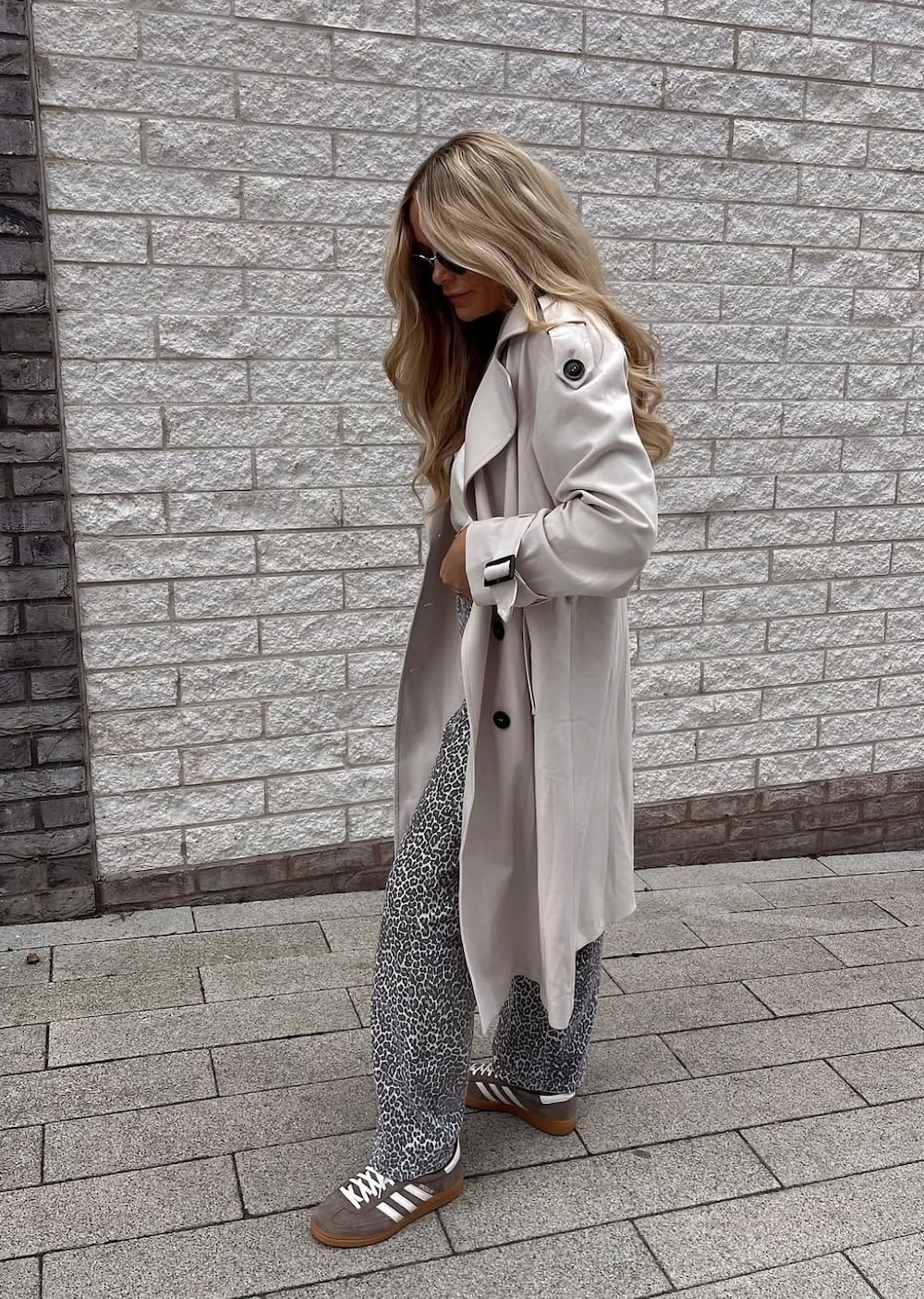 Leopard print brings a confident energy to any outfit, making it an excellent choice for a lively spring event, whether it’s a concert or exploring local markets. To balance the boldness of the print, pairing it with a classic trench coat—perfect for changeable spring weather—and fashionable Samba sneakers ensures comfort and style for extensive walking.
