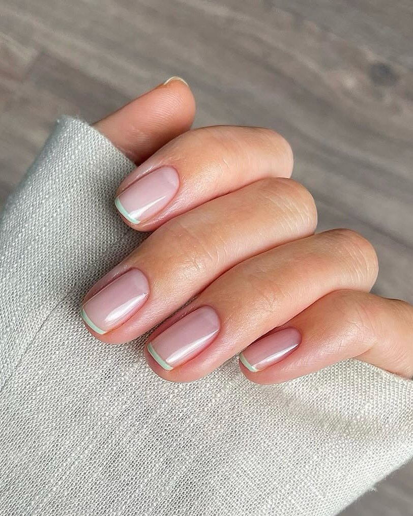 A sheer pink base combined with the most delicate mint green French tips offers a fresh and contemporary look. The color is so subtle it almost appears to be a natural extension of the nail.