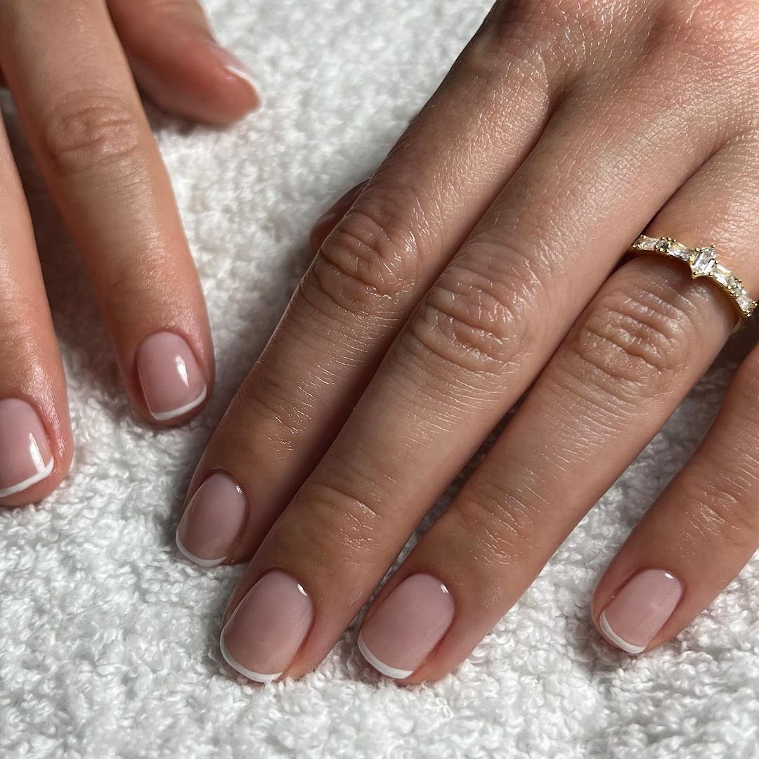 Embracing ultimate simplicity, this short micro French manicure features a sheer pink base and ultra-thin white tips. The result is a soft, natural, polished, and incredibly chic look that is universally suitable for any occasion, from professional settings to formal events.
