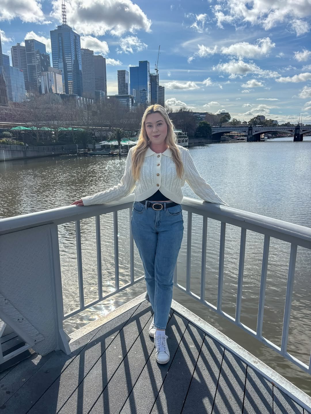 This ensemble has a softness that complements a riverside setting. It feels wholesome yet sophisticated, suitable for a weekend outing that might conclude with brunch and conversation.