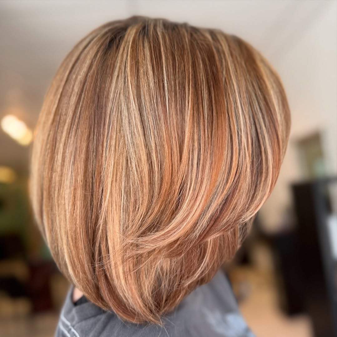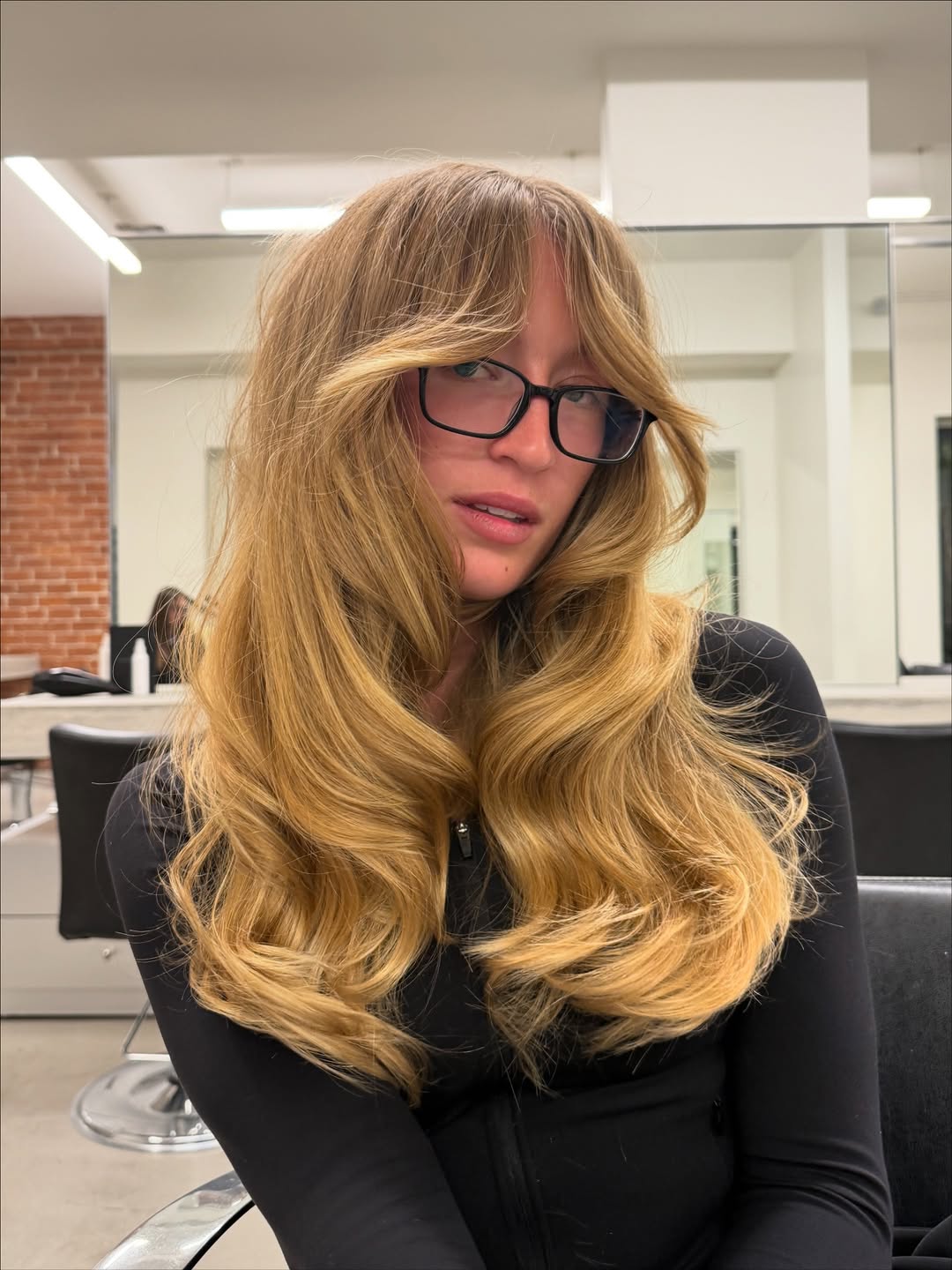 This look brings caramel blonde back to its classic origins, appearing rich, glossy, and timeless. The warmth is carefully controlled and polished, imparting a healthy, luminous finish to the hair.