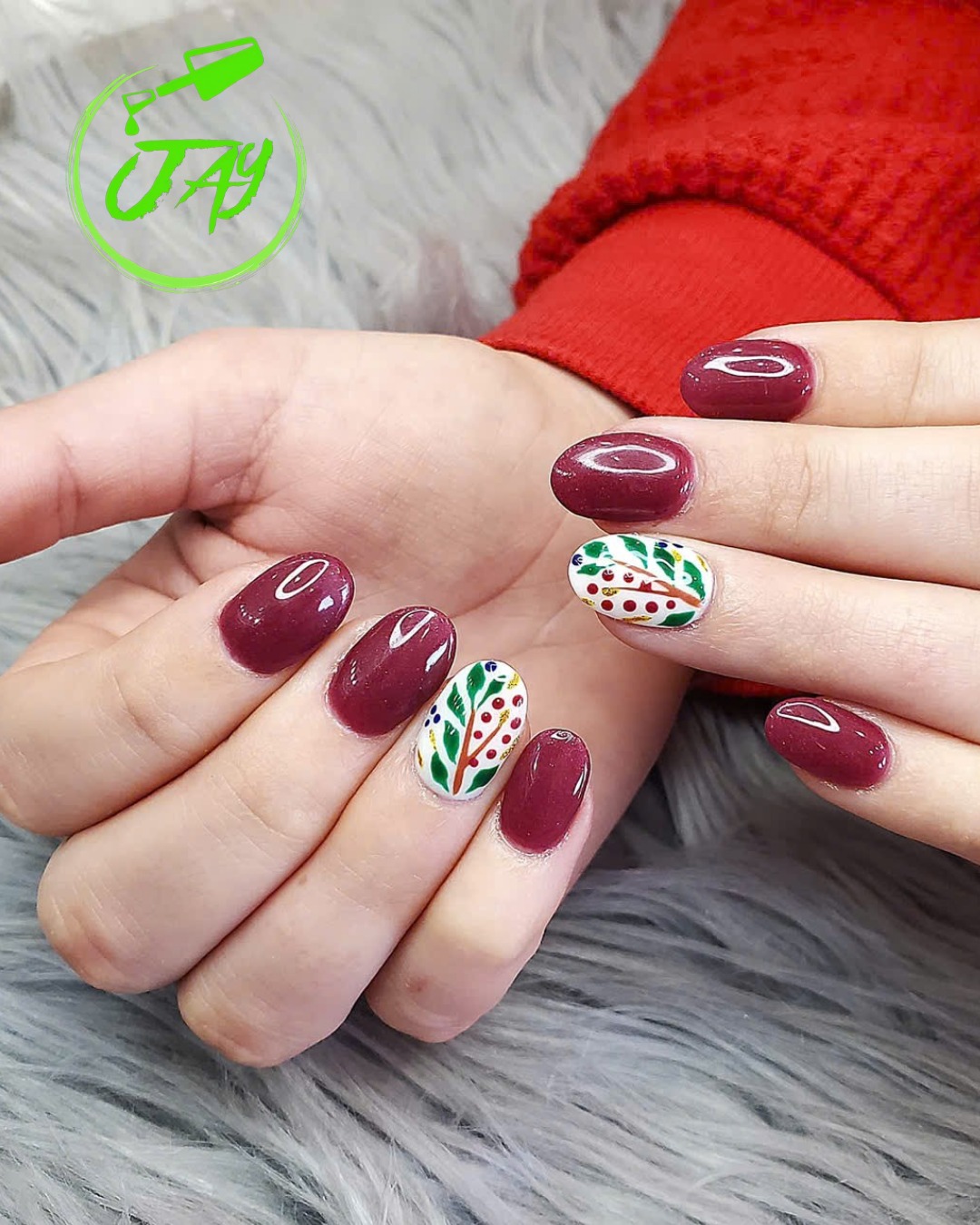 This variation softens the deep cranberry hue with delicate, almost romantic floral accents. The interplay between the rich base color and the airy details lends a refined, artisanal feel, perfect for those who appreciate seasonal color with an artistic touch, like delicate winter blooms captured in lacquer.