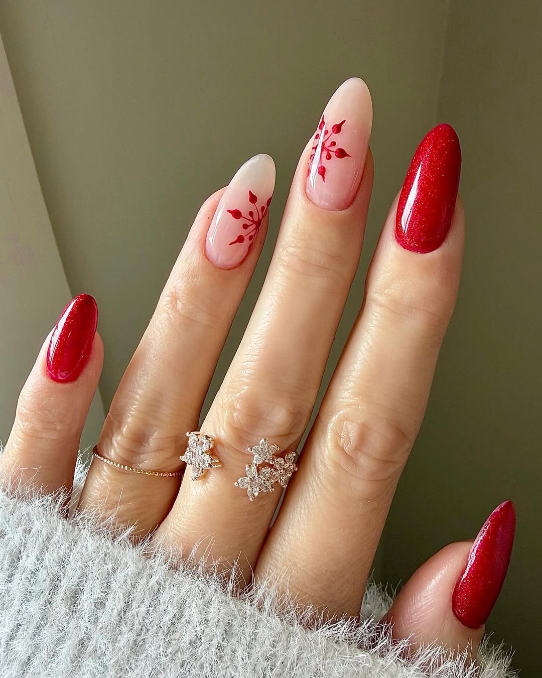It offers a festive feel without resorting to cliché. The almond shape lends an elegant silhouette, while the carefully placed floral art ensures a thoughtfully styled look rather than an overly busy design. For 2026, red nails are about embracing intricate details.