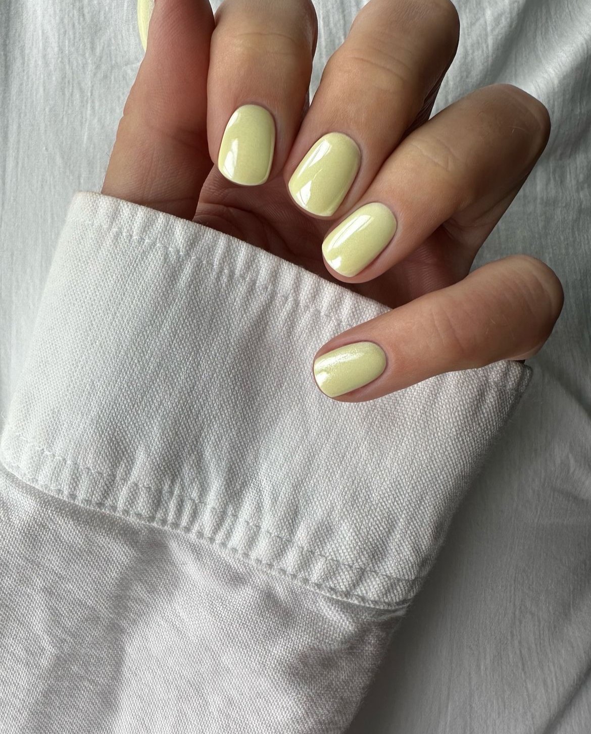 A solid, creamy butter-yellow shade on short, rounded nails serves as an understated yet impactful spring choice. The color is soft, warm, and surprisingly versatile, bringing seasonal cheer without being overpowering.
