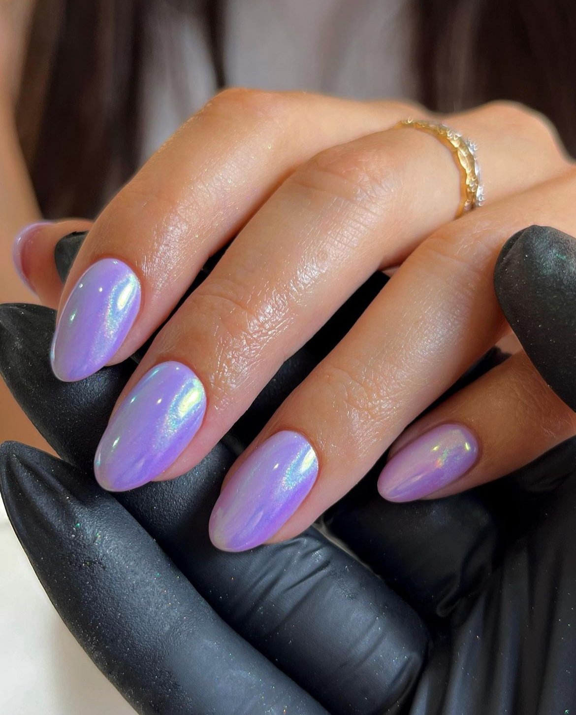On short oval nails, this look feels both modern and sophisticated. It’s a soft purple with a futuristic edge, capturing the essence of spring in 2026.