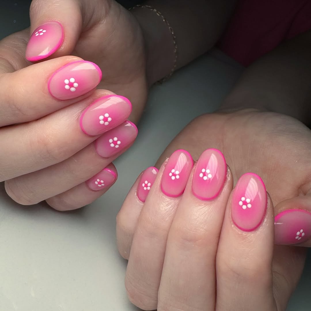 Tiny white dot flowers keep the design simple yet adorable. It’s minimal, cheerful, and the kind of manicure that feels effortlessly cute.