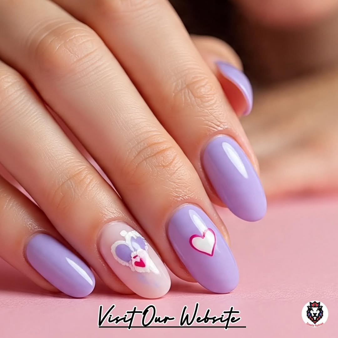 This design leans into a soft, romantic aesthetic, pairing a pastel purple base with delicate heart motifs and subtle white accents. The result is a sweet yet sophisticated look, evoking a gentle, almost cinematic soft-focus mood.