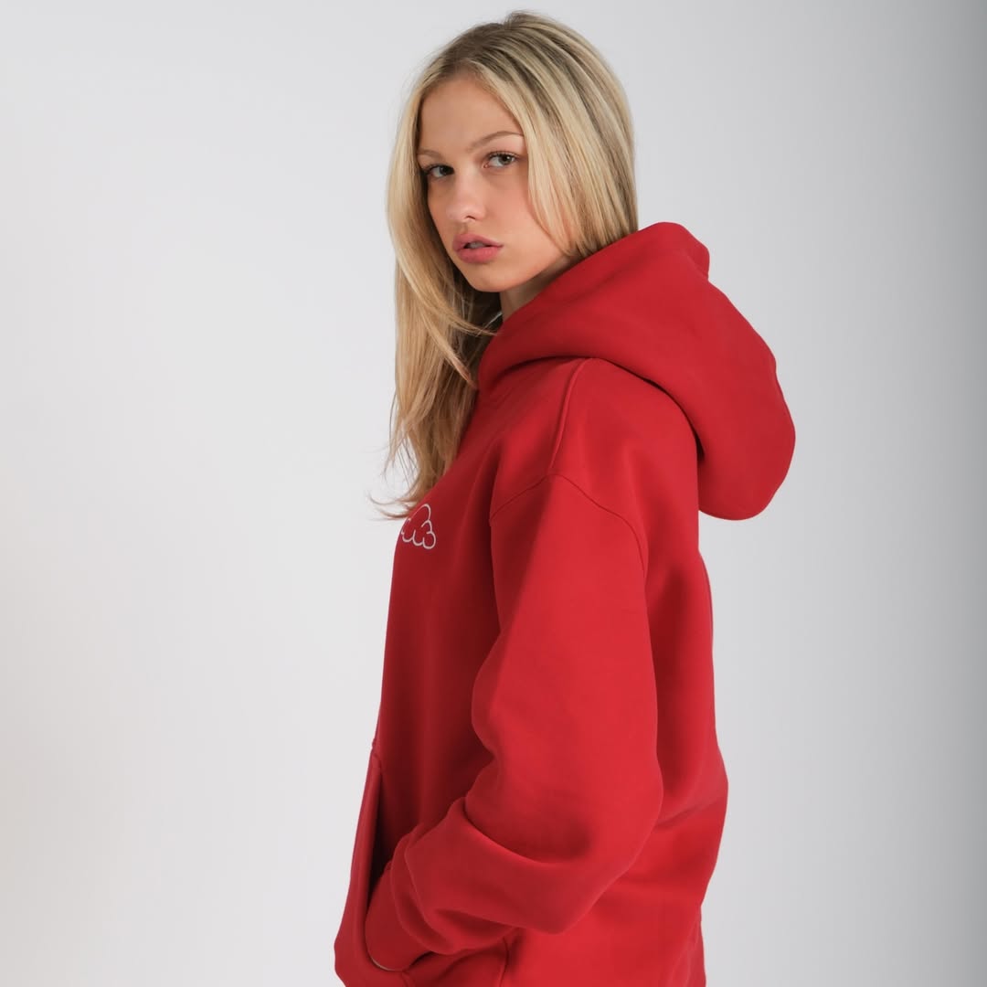 This hoodie maintains a clean, contemporary aesthetic. Its structured fit and rich red shade suggest intentionality, avoiding an overly baggy appearance. It serves as an excellent foundation piece around which to build outfits, offering simplicity, versatility, and understated style.