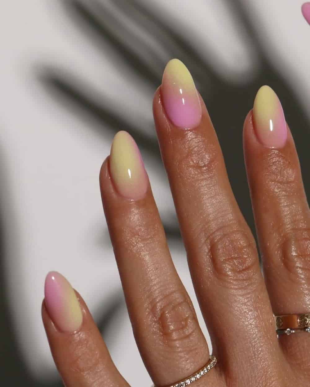 Achieve an “old money” aesthetic this spring with a creamy ivory and pink ombre design. The soft, subtle blend of colors creates a smooth and refreshing manicure that is elegant enough for April weddings yet understated for the workplace.