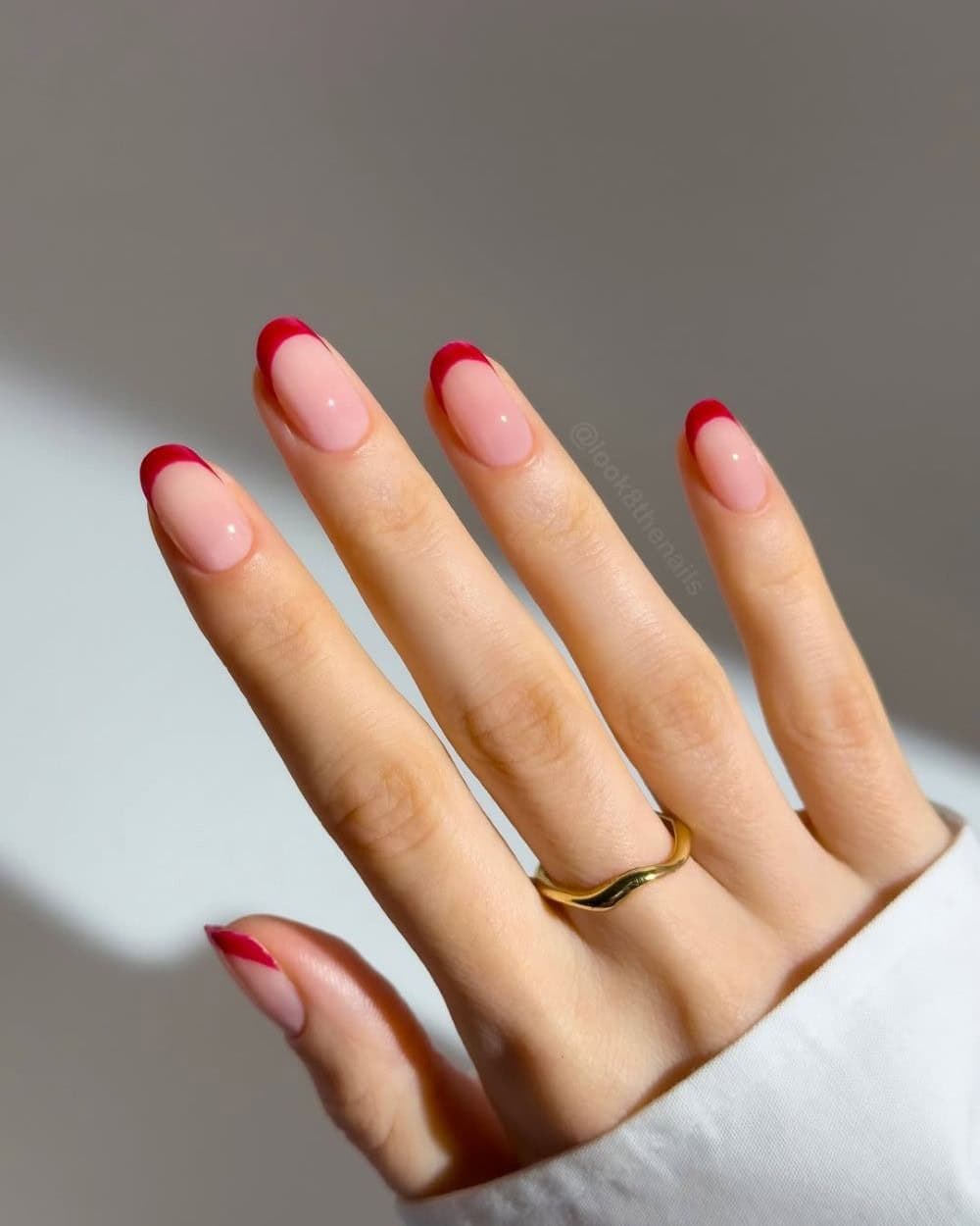 Cherry tones are a significant trend for spring, and cherry-tipped nails offer a vibrant pop of color. Pairing this vivid shade with a nude base maintains a classic aesthetic, while a pale pink base provides a subtle feminine contrast. This design adds a fun yet chic element to any look.