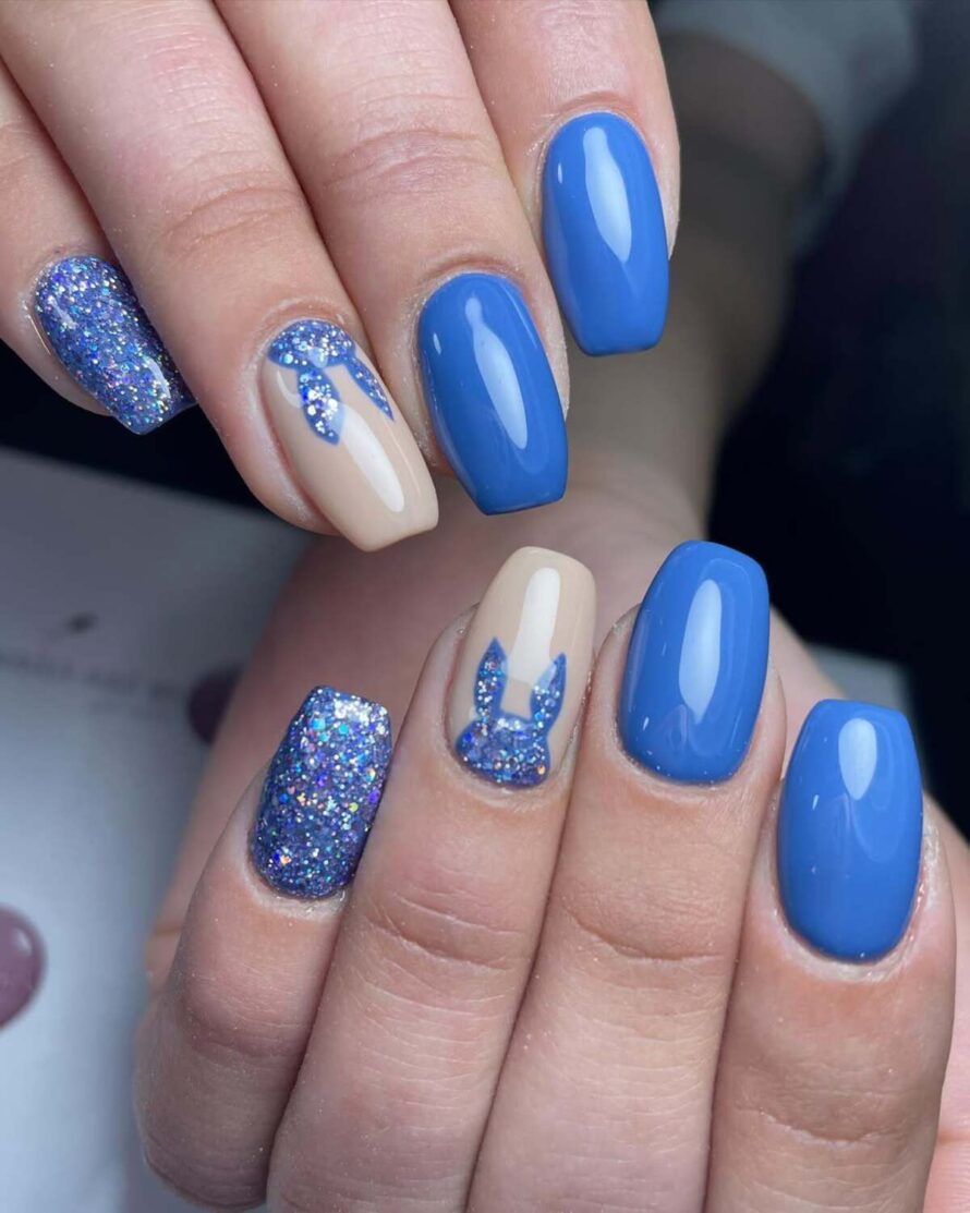 This set excels in its use of contrast. The striking blue hue combined with glitter accents provides a playful yet sophisticated vibe, and the integrated bunny detail serves as a subtle seasonal nod.