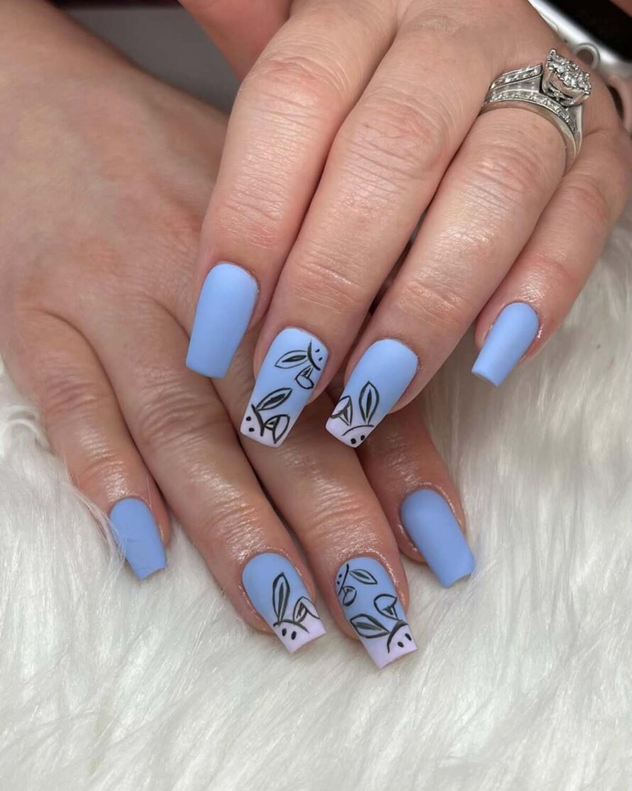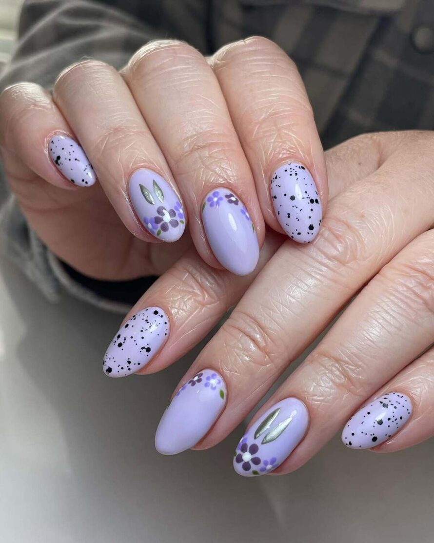 These nails convey a sense of calm and beauty, with muted purples, delicate floral patterns, and understated bunny motifs harmonizing to create a serene spring garden ambiance.