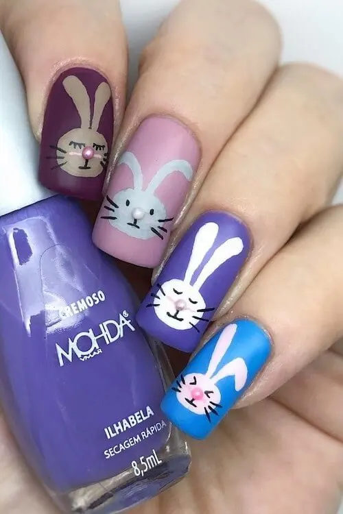 This style proves that bunny nail art can be subtly cute. It is refined, stylish, and ideal for those who prefer a more understated expression.