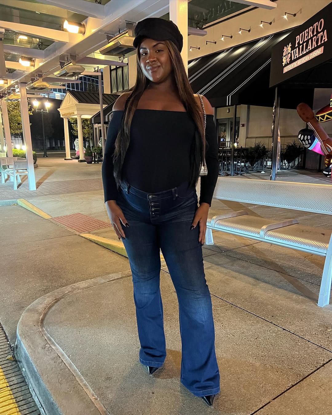 Concluding with a look that is relaxed, confident, and perfectly on-trend. The jeans fulfill their purpose by providing comfortable support and flattering qualities, while the styling keeps the overall aesthetic fun and easygoing.
