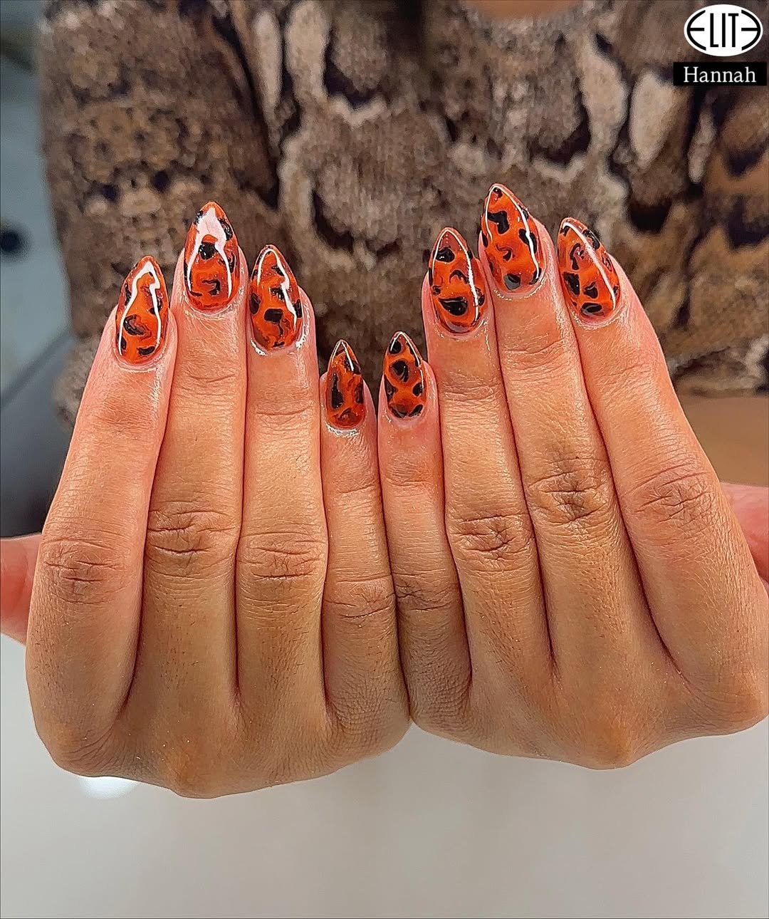 These tortoiseshell nails exude a warm, glossy richness, reminiscent of a cozy cafe setting. The deep amber and black pattern adds a touch of drama, while the almond shape ensures an elegant and wearable finish. This design is bold yet sophisticated, instantly elevating neutral attire and pairing perfectly with gold accessories.