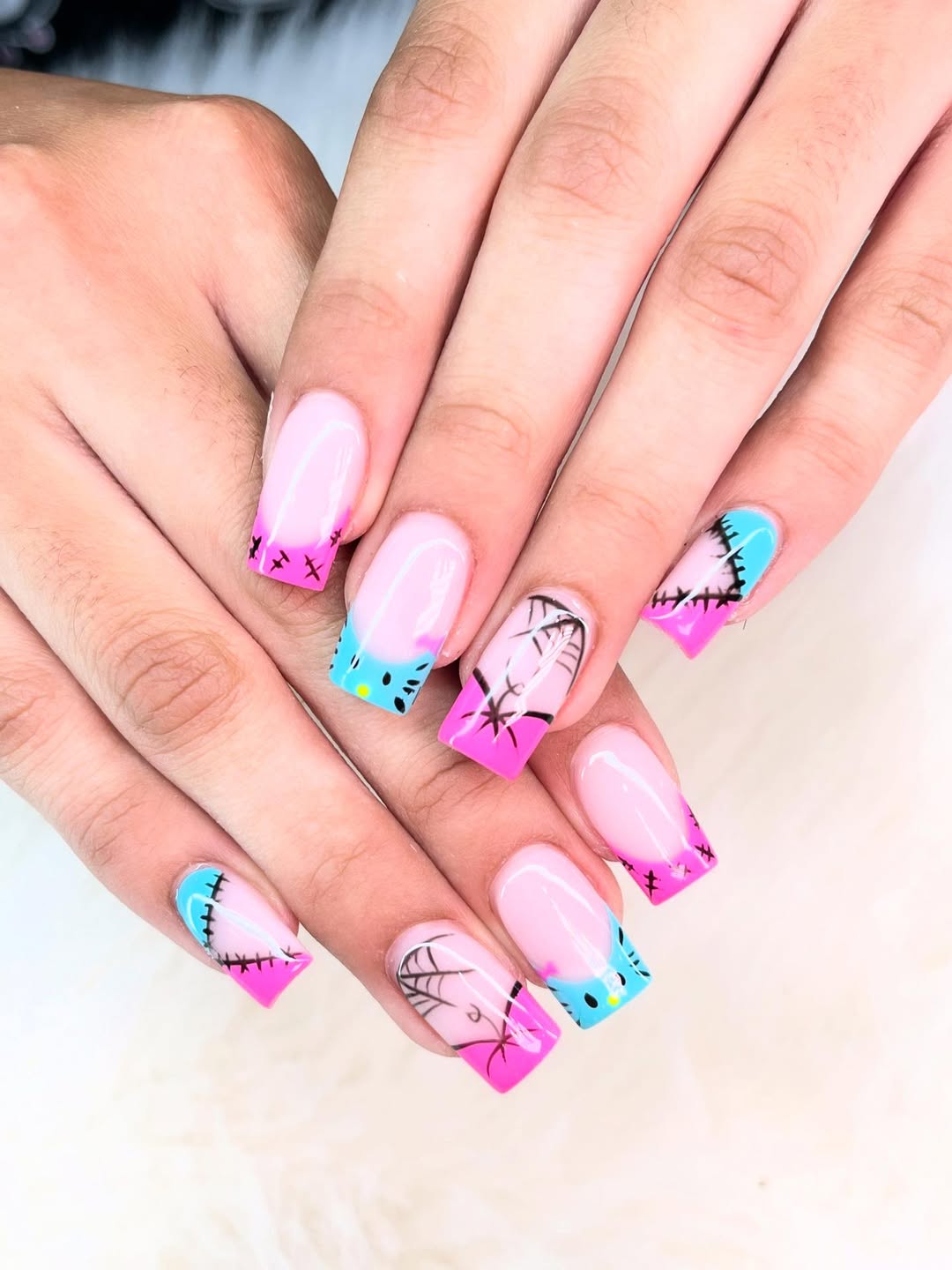 Bright tips and graphic accents inject energy and a fun edge into this set, while a soft pink base maintains a sense of balance. The design is bold yet avoids appearing chaotic, offering playfulness without sacrificing polish. It evokes a vacation-ready vibe with an elevated finish, projecting confidence and expressiveness.