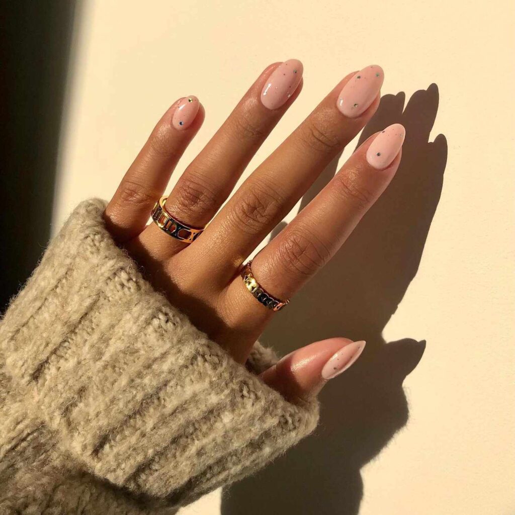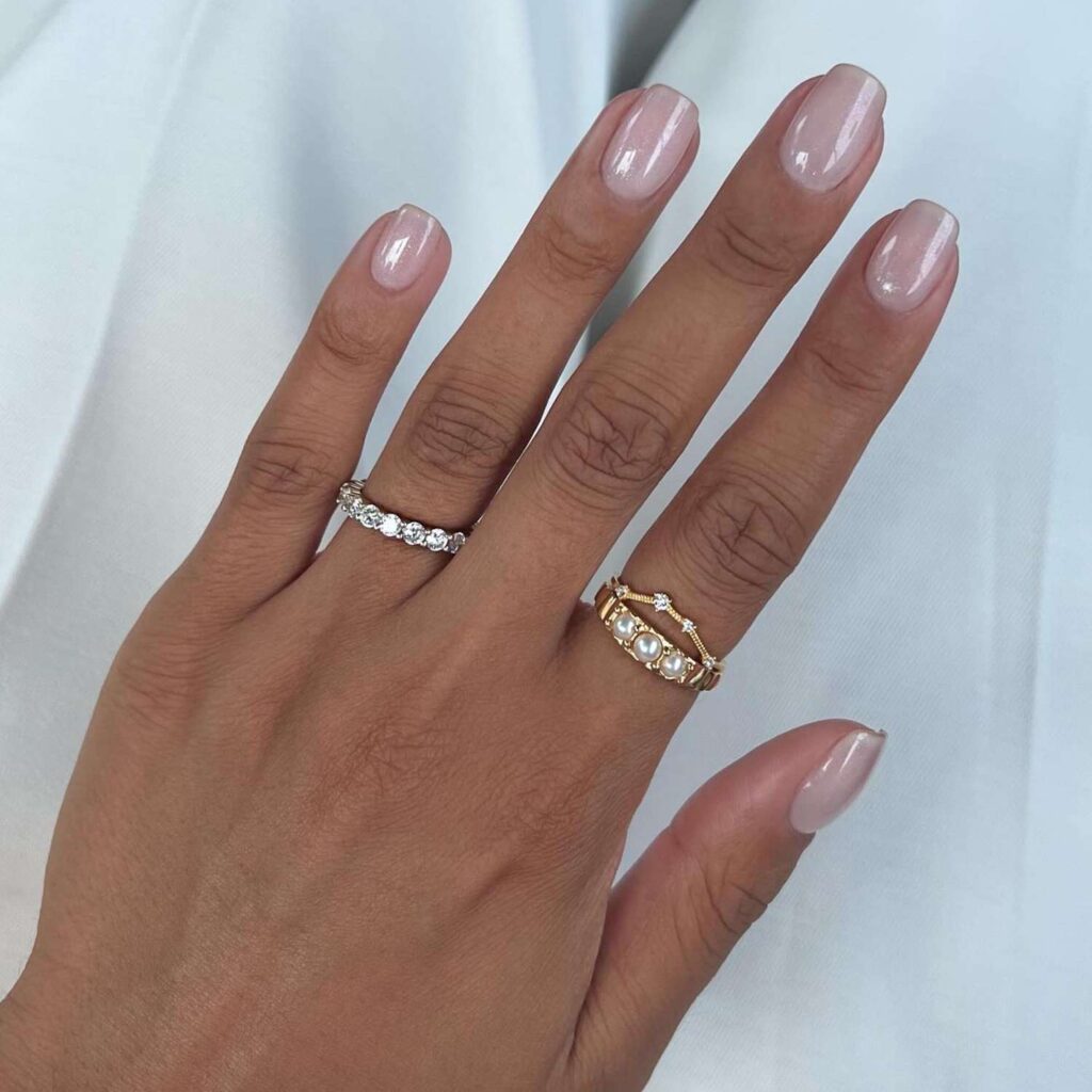 A hint of pink can transform the classic milky manicure into something even softer and more romantic. This variation uses a sheer polish with a delicate pink tint, offering a blush-like effect that’s utterly charming and feminine.