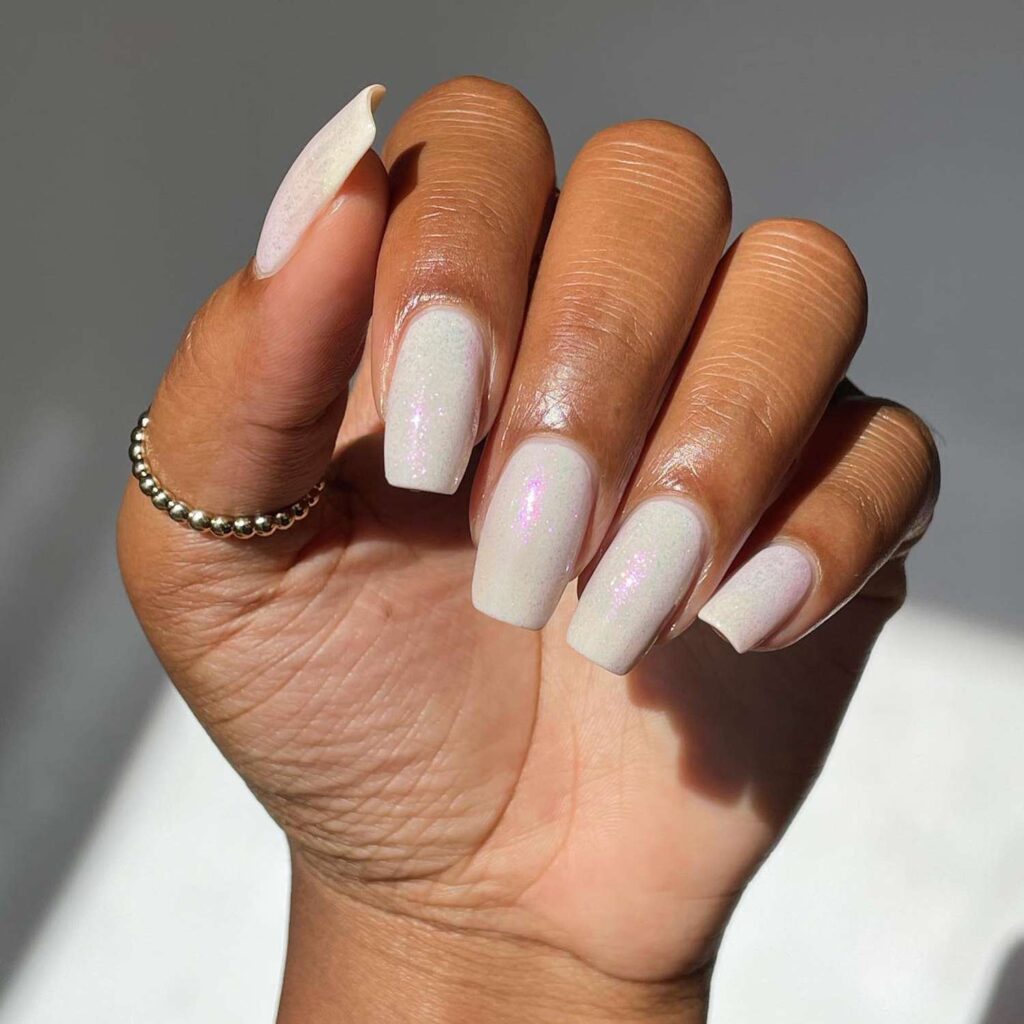 Achieve a luxurious, iridescent shine by incorporating pearl finishes into your milky manicure. This often involves a subtle shimmer in the polish itself, or a pearlescent top coat, giving your nails the radiant glow of a precious pearl.