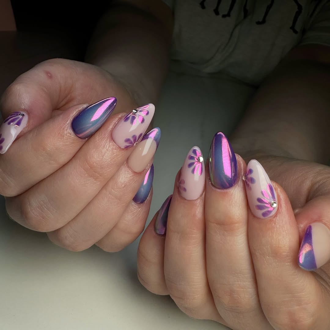 Here, chrome meets charm in the cutest way possible. The glossy finish adds dimension, while the heart accents keep things light and fun. It feels youthful without being childish. These nails are flirty, feel-good, and dangerously Instagrammable. The kind of set that makes you look at your hands way more than necessary.