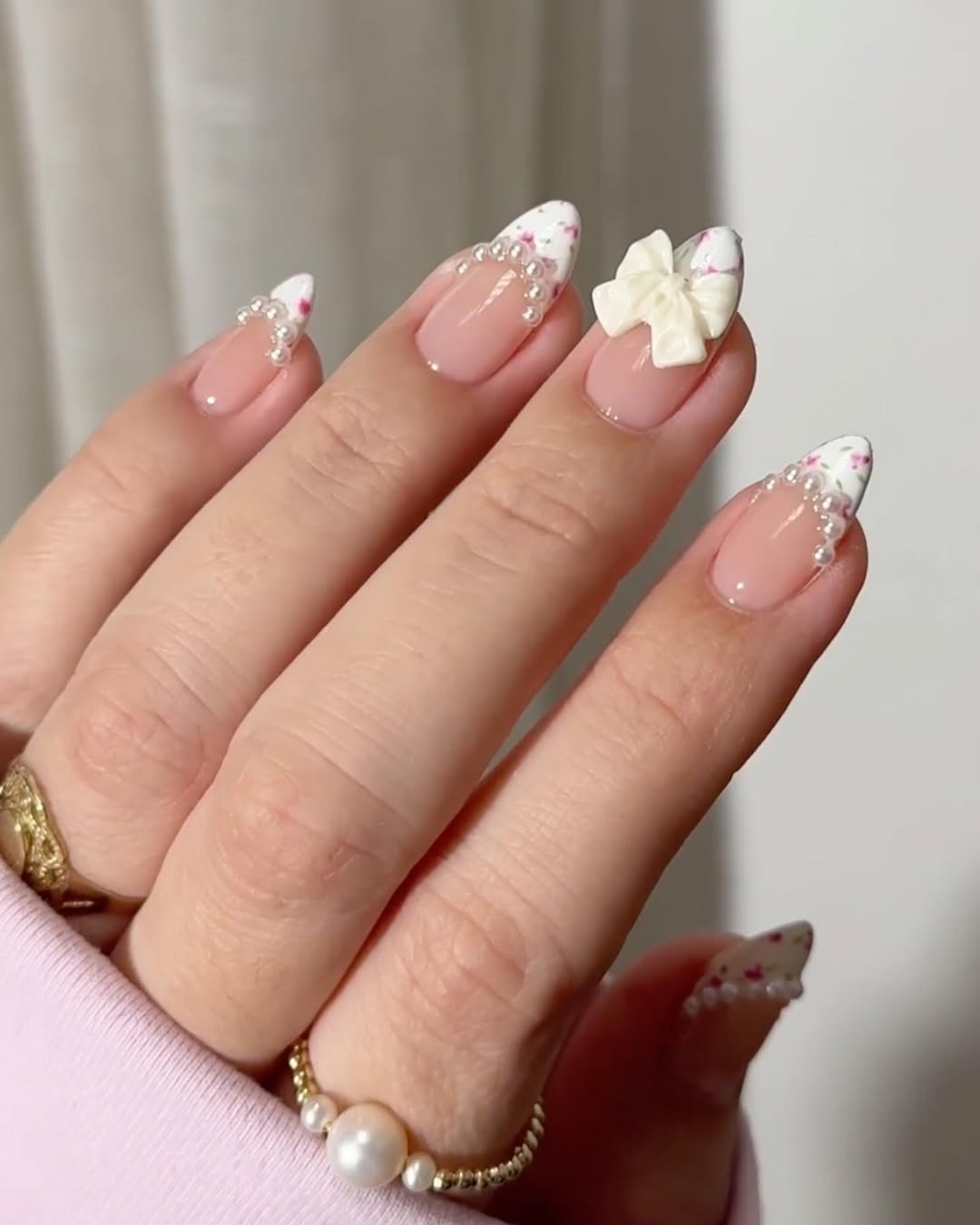 There’s something quietly expensive about this look. Milky bases, subtle embellishments, and that barely-there glow that makes you do a double take instead of scrolling past. These are “close your laptop gently” nails. Elegant, polished, and proof that restraint can be just as powerful as drama.