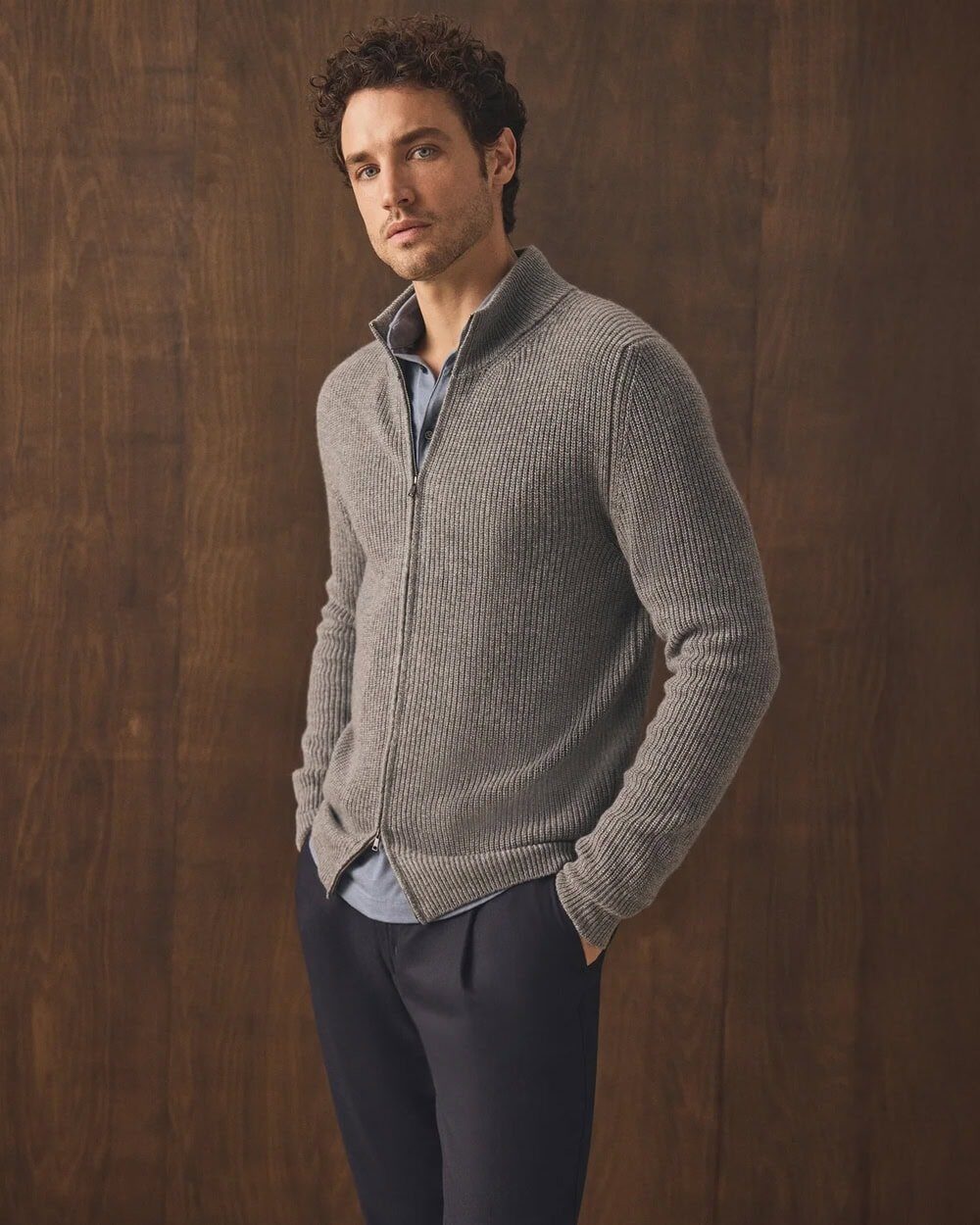 Forget stiff tailoring — cashmere knitwear gives you elegance and comfort in one. The silky, luxurious texture of a cashmere crewneck or zip-up cardigan adds instant elevation. I love pairing my Luca Faloni Zip Cardigan 2-Ply Cashmere with a slim-fit T-shirt, tailored wool pants, and chunky Derbies, topped with a wool overcoat. The result? A look that feels polished yet effortless.