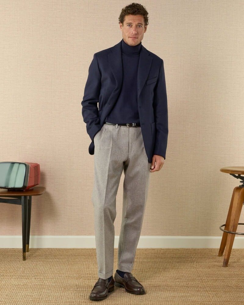 Mixing tailored separates instead of a matching suit adds freedom and creativity to your wardrobe. Cream & olive, navy & grey, or brown & camel always work. I often style the Velasca Lollove jacket with Luca Faloni pleated trousers or the Besnard Olive Brown Single Pleat Linen Trousers — both combos look laid-back yet sharp.