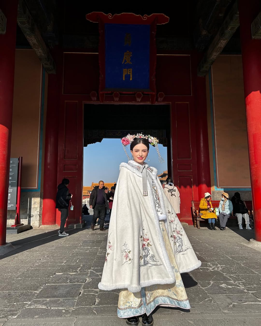 Layers, warmth, and undeniable dramatic flair define this look. Against a historic backdrop, it evokes an imperial feel, with the cape-like outer garment adding a touch of fairytale enchantment.