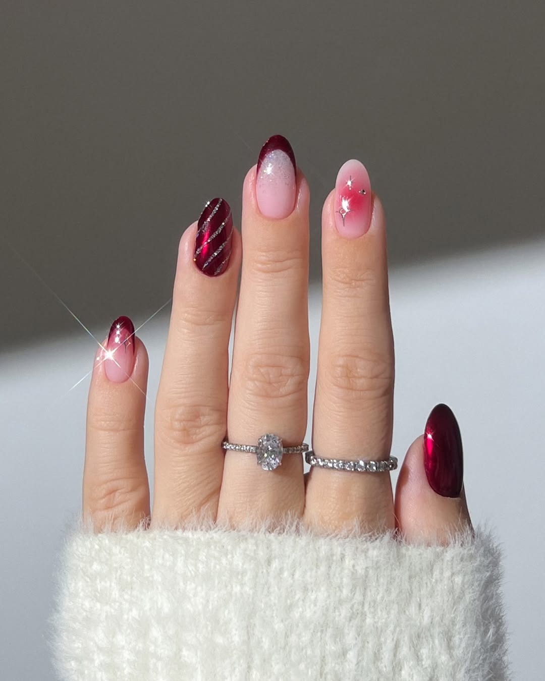 This manicure is perfect for winter events or any time you desire a cheerful yet refined look. It represents joyful nail art executed with finesse.