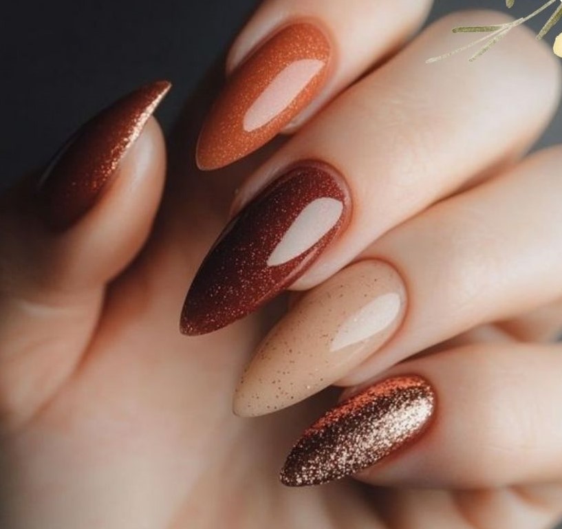 This manicure blends coziness with glamour, akin to pairing a favorite knit sweater with a statement ring.